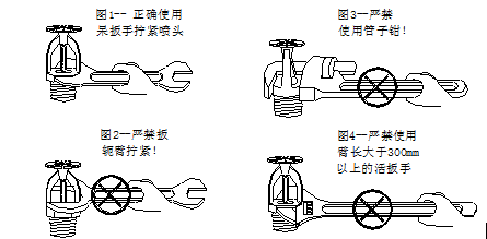 3、噴頭安裝(zhuāng)時應(yīng)使用(22X24)的呆扳手的相應扳口,並注意正確使用,如下圖(tú)。噴頭擰緊力距為10-20N.m,嚴禁超過30N.m。